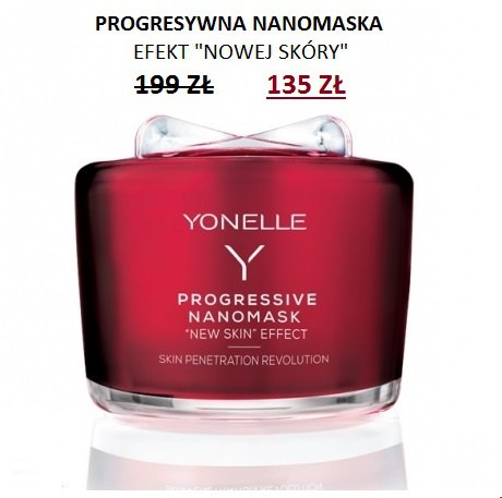 Nanomaska ‒ innowacyjny kosmetyk na bazie NANODYSKÓW™ wypełnionych witaminą C oraz kwasów o 4% stężeniu. Polecana do szybkiej rewitalizacji każdego typu cery dojrzałej, zmęczonej, do stosowania 2-3 razy w tygodniu. Już po jednorazowym użyciu skóra staje się miękka i gładka w dotyku, odświeżona, nawilżona, bardziej elastyczna, rozjaśniona. Stosowanie Progresywnej Nanomaski zapewnia narastające w czasie efekty: wygładzenia powierzchni skóry, ujędrnienia i zmniejszenia widoczności porów. Cera ma zdrowszy koloryt i wygląda młodziej. Efekt „nowej skóry” osiągnięto dzięki synergii działania witaminy C, transportowanej w głąb skóry przez NANODYSKI™, EKSFOLIACJI PROGRESYWNEJ™ na bazie KWASU FITOWEGO oraz nowatorskiej formy emulsji o niskim pH, zapewniającej ponadprzeciętną aktywność biologiczną Progresywnej Nanomaski. Efekt ten wspomaga ekstrakt z ALGI ŚNIEŻNEJ / SNOW ALGAE, który aktywuje gen przedłużający młodość komórek skóry.